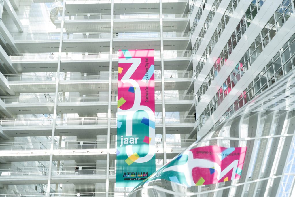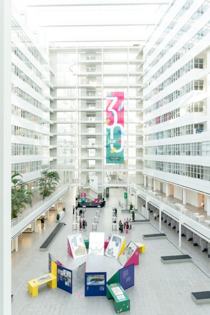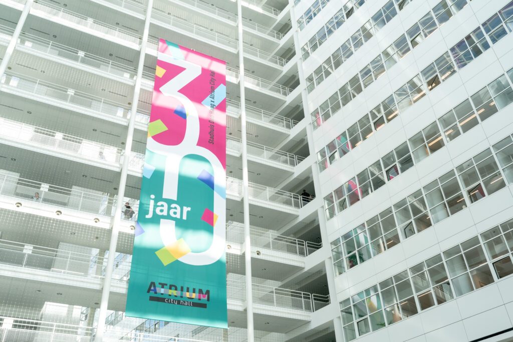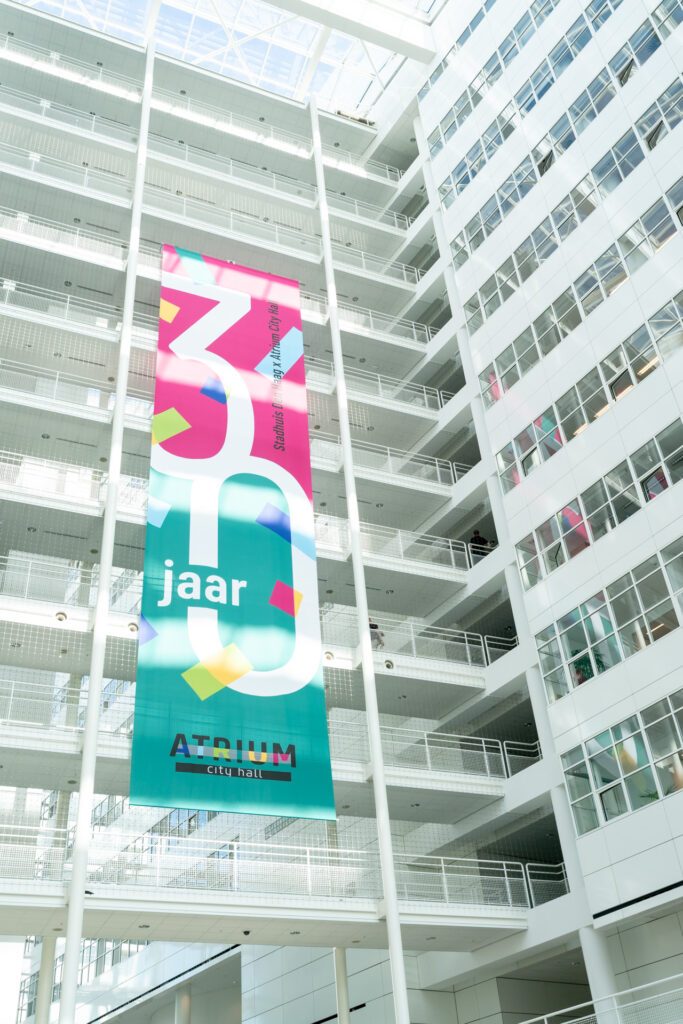 The exhibition 30 Years: City Hall The Hague x Atrium City Hall is an initiative of Atrium City Hall, the foundation that organizes and coordinates all activities since the opening in the Atrium of The Hague City Hall. The curators of this exhibition are Corien Bakker and Laura Wijninga, the design is by Meta Menkveld and the exhibition builder is LetterZDesign.