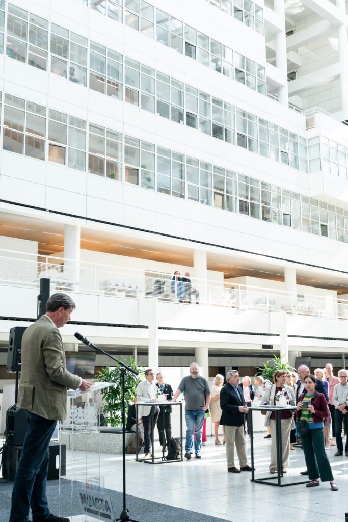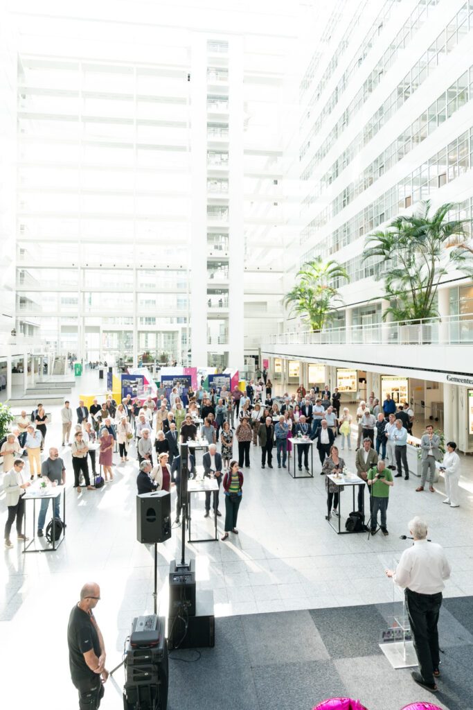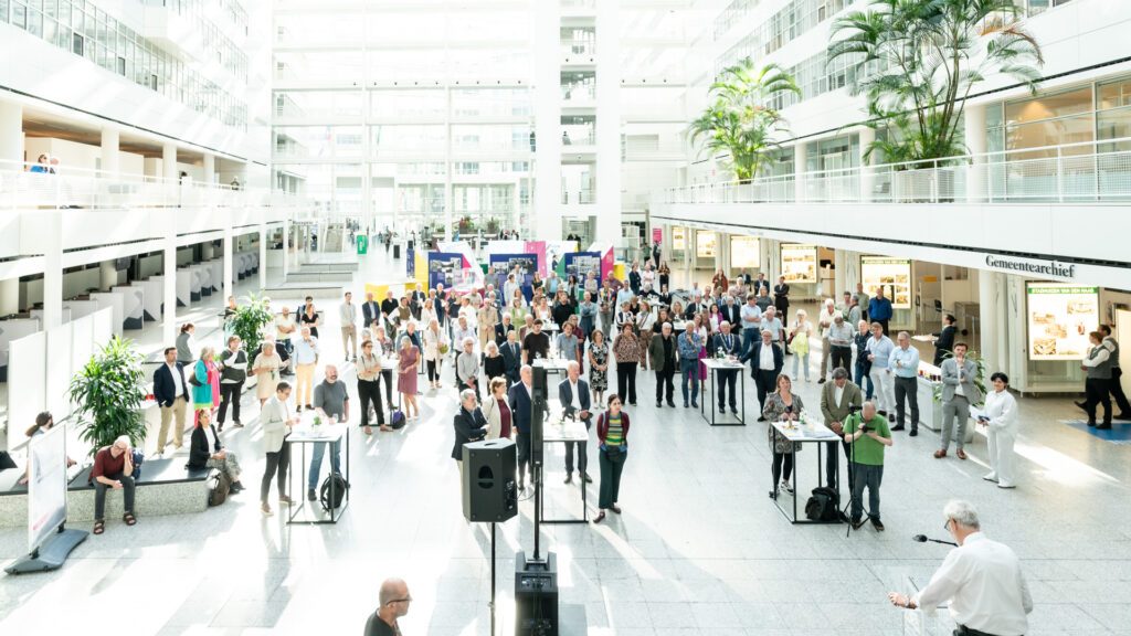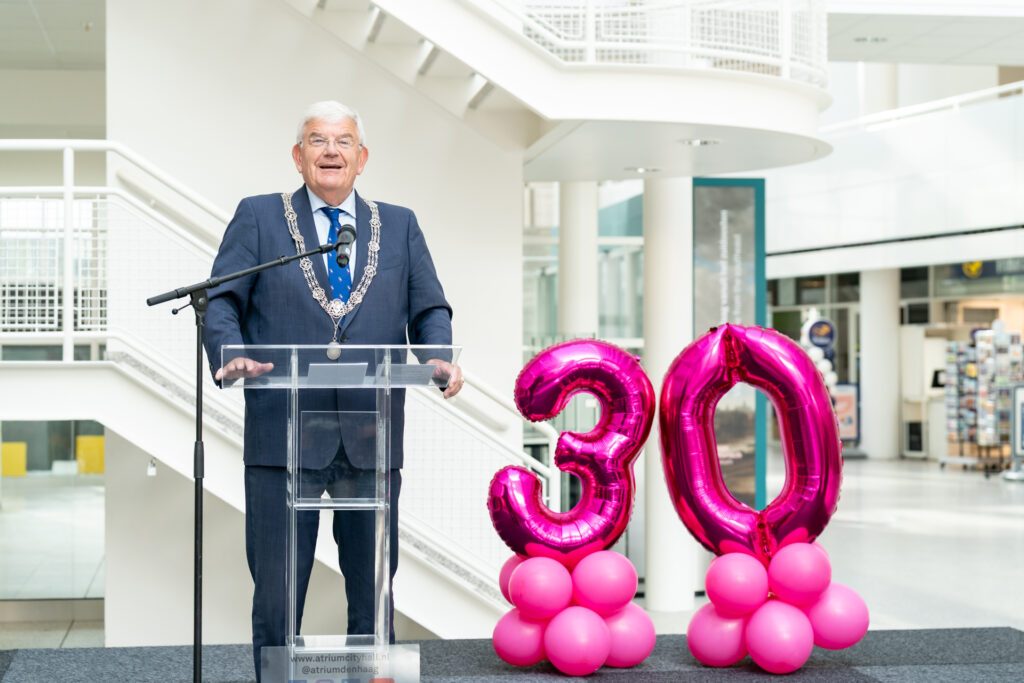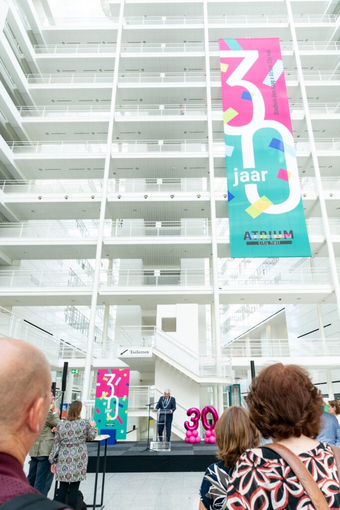 On Monday, September 8, 2025, it was exactly 30 years since the opening of City Hall on September 8, 1995. This was celebrated extensively at the anniversary celebration of the exhibition 30 Years of The Hague City Hall x Atrium City Hall, initiated by the Atrium Foundation. It was a festive gathering with inspiring and amusing stories from the past 30 years, presented by current chairman of the Atrium Foundation, Theo Heere, architect Rijk Rietveld, and former alderman and chairman of the Atrium Foundation, Henk Kool. Mayor Jan van Zanen opened the exhibition. See photos from De Schaapjesfabriek – Tessa Veldhorst of this special day below.