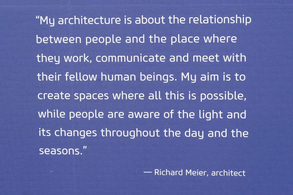 “My architecture is about the relationship between people and the places where they work, communicate, and meet with others. My intention is to create spaces where all of this becomes possible while being aware of the light and its changes throughout the day and the seasons,” says Richard Meier.