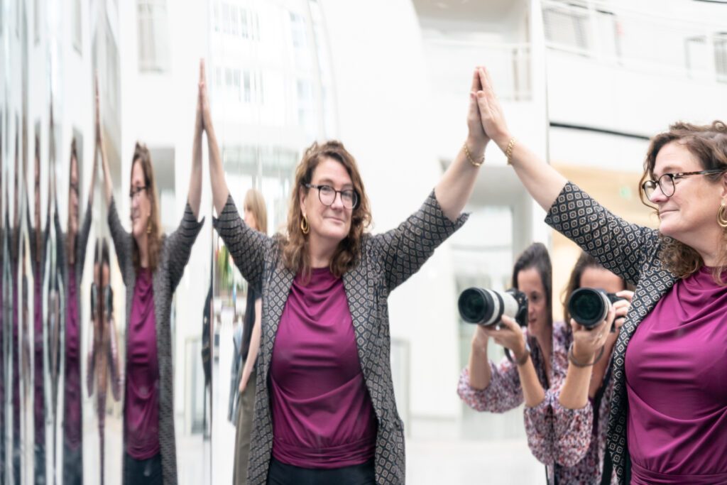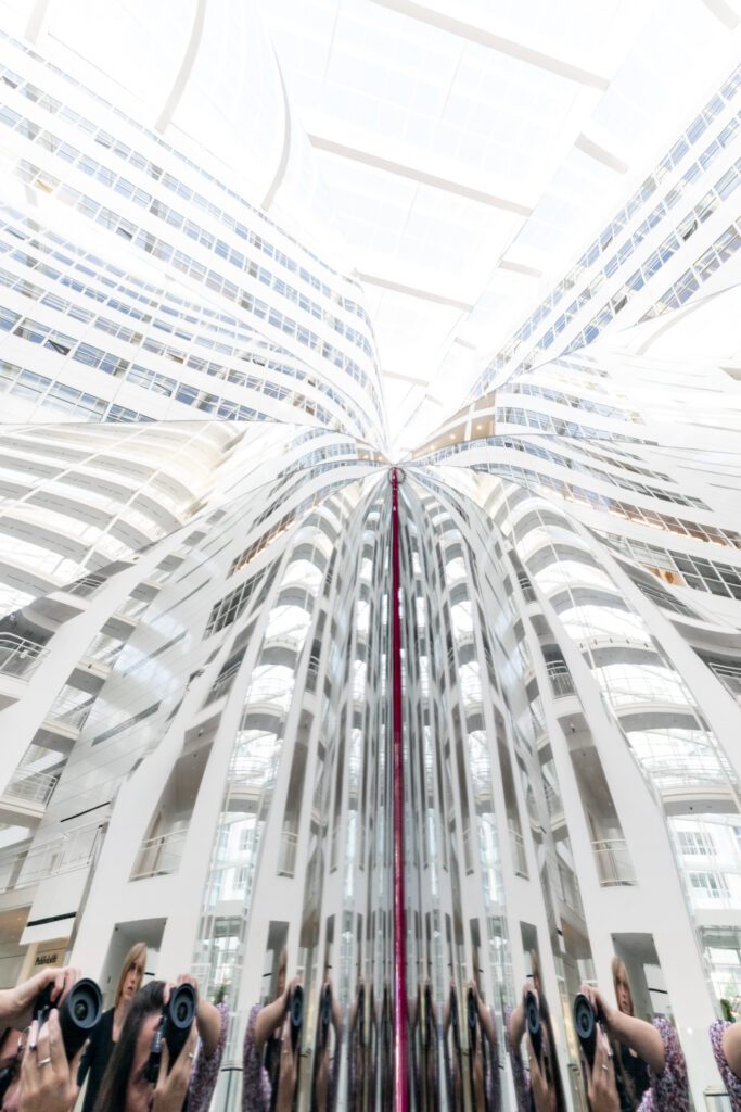 Visitors are invited to look at the Atrium of the City Hall through mirrors. This allows them to see Richard Meier’s design in a completely different light and take some truly special selfies!