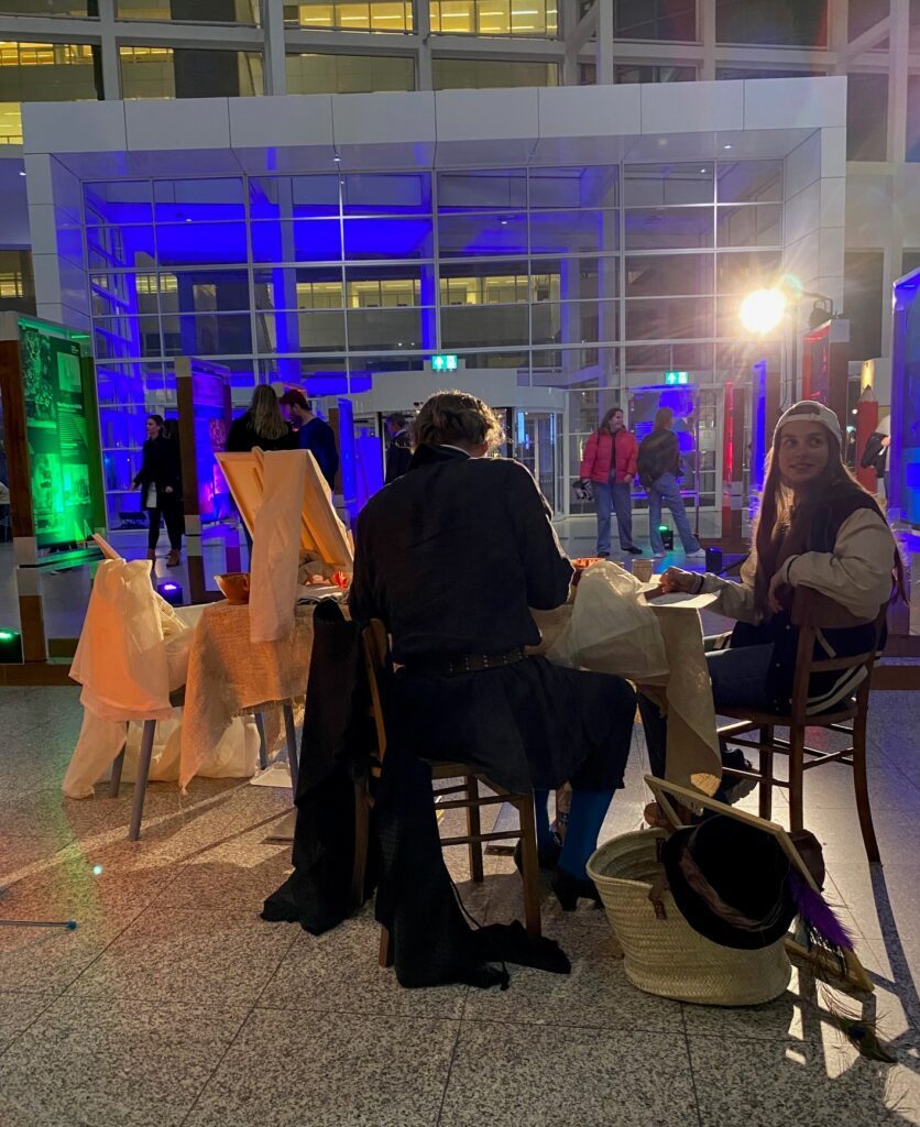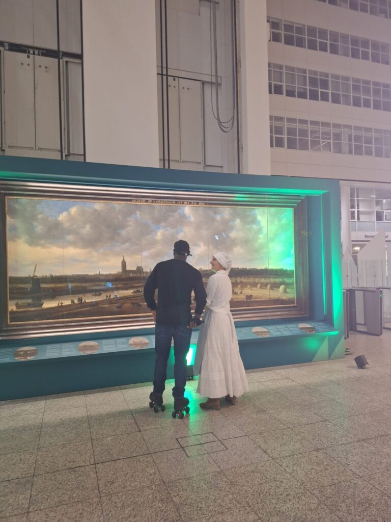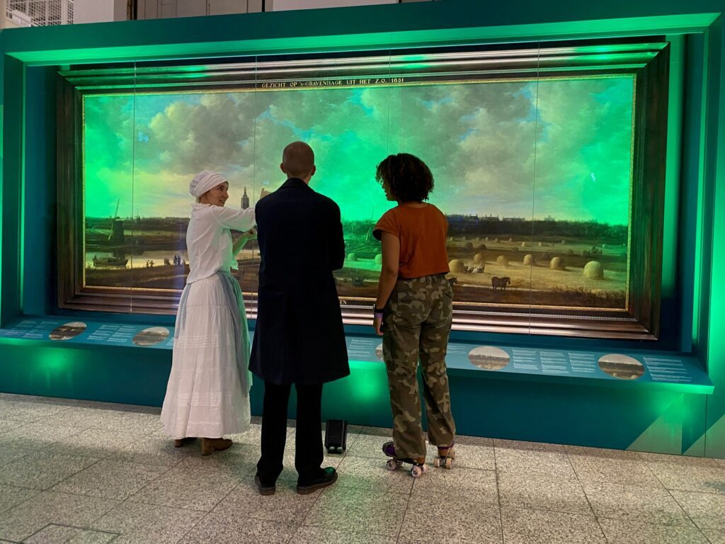 Experience The Hague in 1650 in a unique way! The Atrium currently features a masterpiece from the collection of the Hague Historical Museum: the painting ‘Gezicht op Den Haag’ by Jan van Goyen. This masterpiece lets you wander through a historic landscape—what The Hague looked like around 1650! And tonight? You can step into the painting yourself! Take a seat by the windmill, the boats and the Grote Kerk. Choose your spot, smile for the camera, and click—welcome to the 17th century!